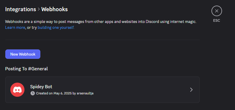 Création du Webhook