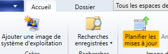 Puisque WSUS (Windows Server Update Service) est intégré à Configuration Manager, ce dernier peut utiliser le service de mises à jour pour automatiquement appliquer des Windows Updates sur des images système importées. Il suffit de se diriger dans "Planifier les mises à jour". WSUS n'est cependant pas actif dans l'infrastructure de Configuration Manager que je vous ai remise.