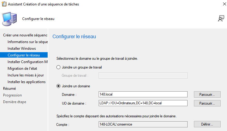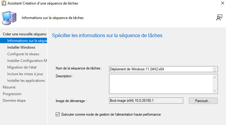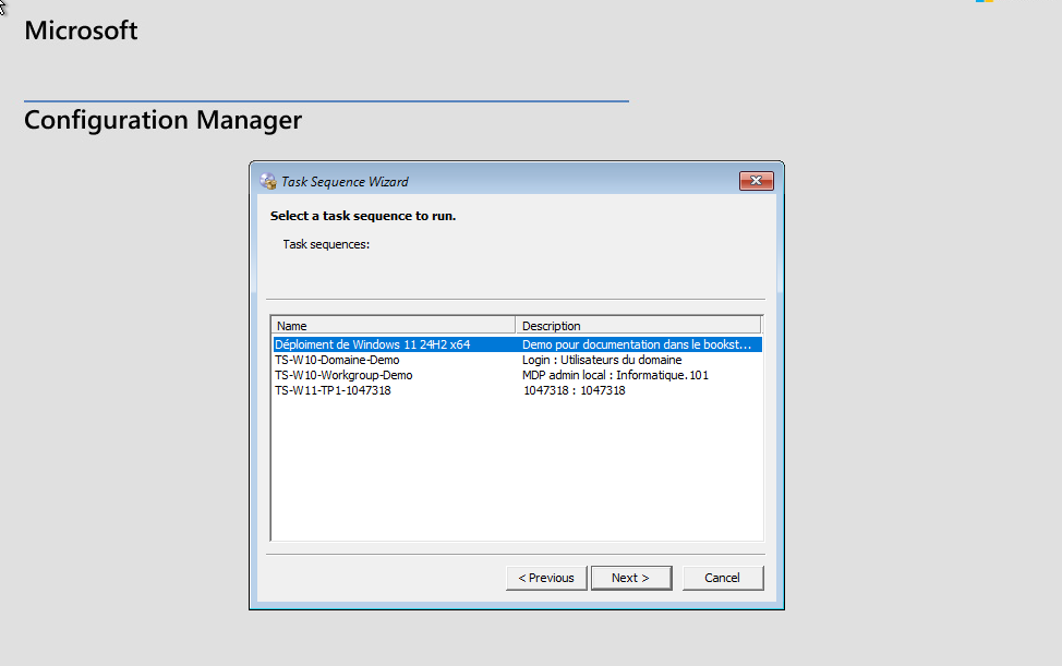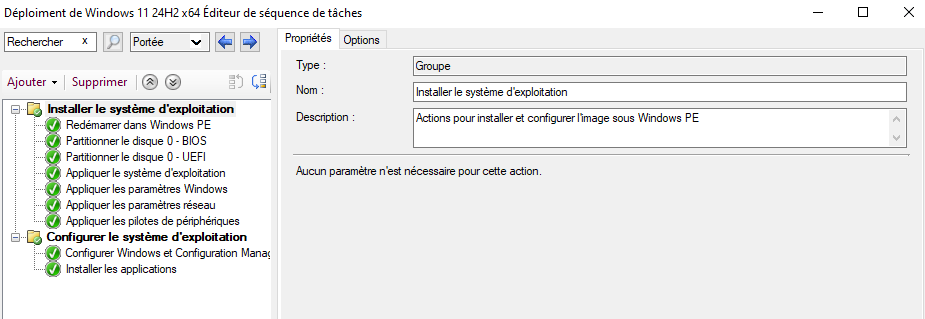 Personnalisation d'une séquence de tâches pour déploiment de Windows