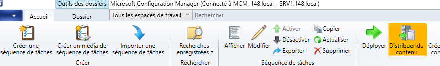 Le bouton de distribution de contenu dans le ruban au haut de la console distribuera tout contenu requis pour la séquence de tâche aux points de distribution qui vous conviendront.