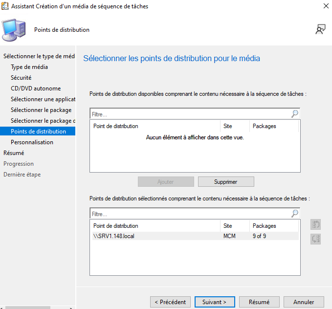 La dernière étape consiste à indiquer à votre console Configuration Manager sur quel point de distribution se baser pour télécharger le contenu et préparer votre média d'installation