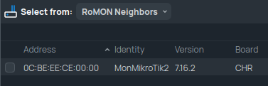 Une fois connecté, vous devriez avoir une nouvelle se4ction "RoMON Neighbors" qui contiendra tous les appareils découverts par celui auquel vous vous serez connecté.
