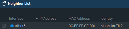 Advenant qu'un appareil ait été réinitialisé sans paramètres par défaut et qu'il ne possède ni adresse IP, ni port série, il faudra par conséquent y accéder avec son adresse MAC. Ici, Winbox nous permet d'y accéder autant avec son adresse IP qu'avec son adresse MAC. Pour y accéder par son adresse MAC, il faut évidemment être dans le même domaine de diffusion.